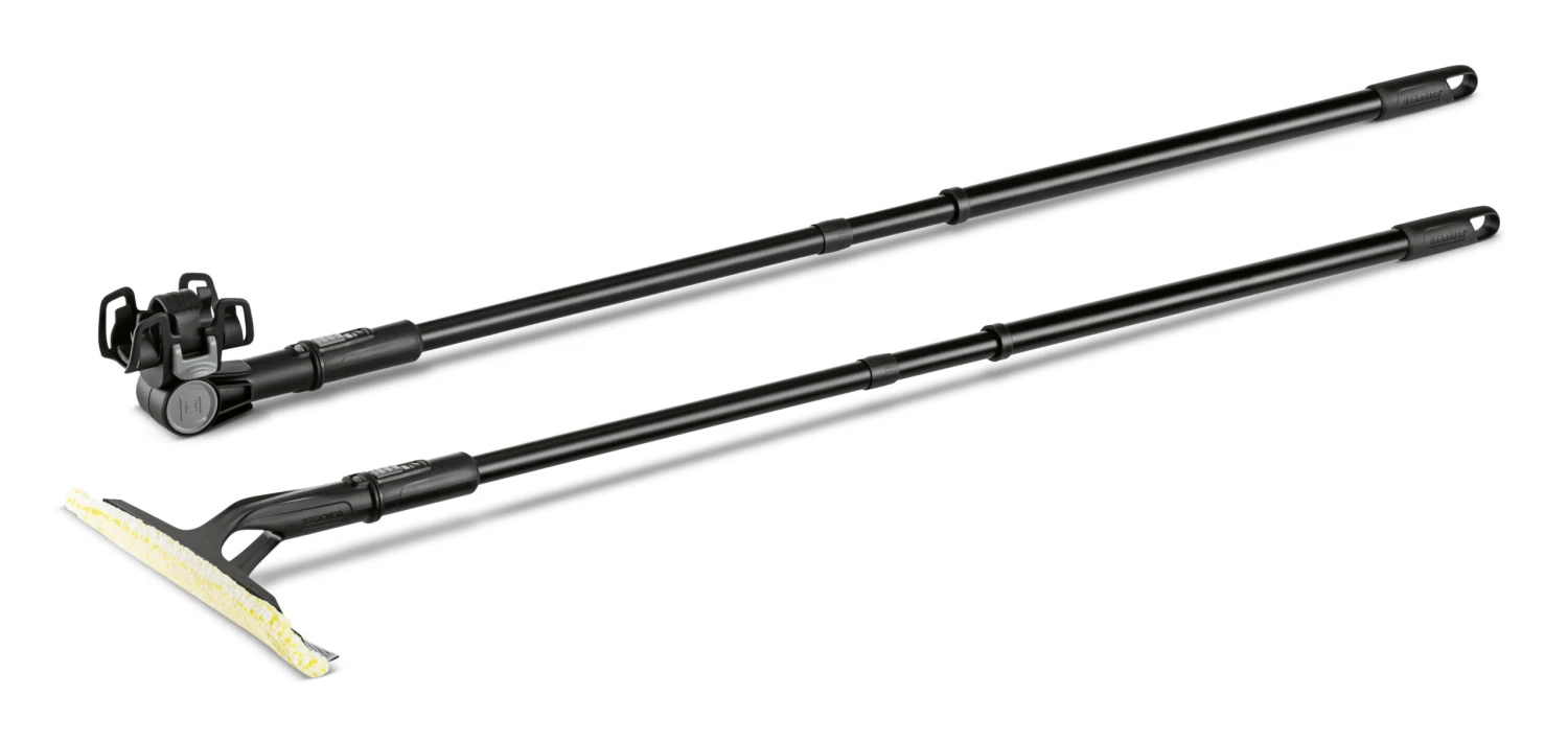 Hohe Fenster, Oberlichter und andere schwer erreichbare glatte Oberflächen reinigen Sie jetzt ganz komfortabel und ohne umständlich auf Leitern steigen zu müssen: Das teleskopierbare Verlängerungsset für unsere Akku-Fenstersauger und den vibrierenden Akku-Wischer macht es möglich. Das Set besteht aus 2 Teleskopstangen, einer mit flexiblem Gelenk versehenen Aufnahme für den Fenstersauger und Akku-Wischer sowie einem Einwischer mit Mikrofasertuch. Bis zu 1,5 Meter zusätzliche Reichweite bietet das Set, sodass Reinigungsarbeiten in Wohnräumen, Bädern oder Wintergärten bis zu einer Höhe von circa 3,5 Metern auch für kleinere Personen mühelos zu bewerkstelligen sind. / Menge: 1 Stück