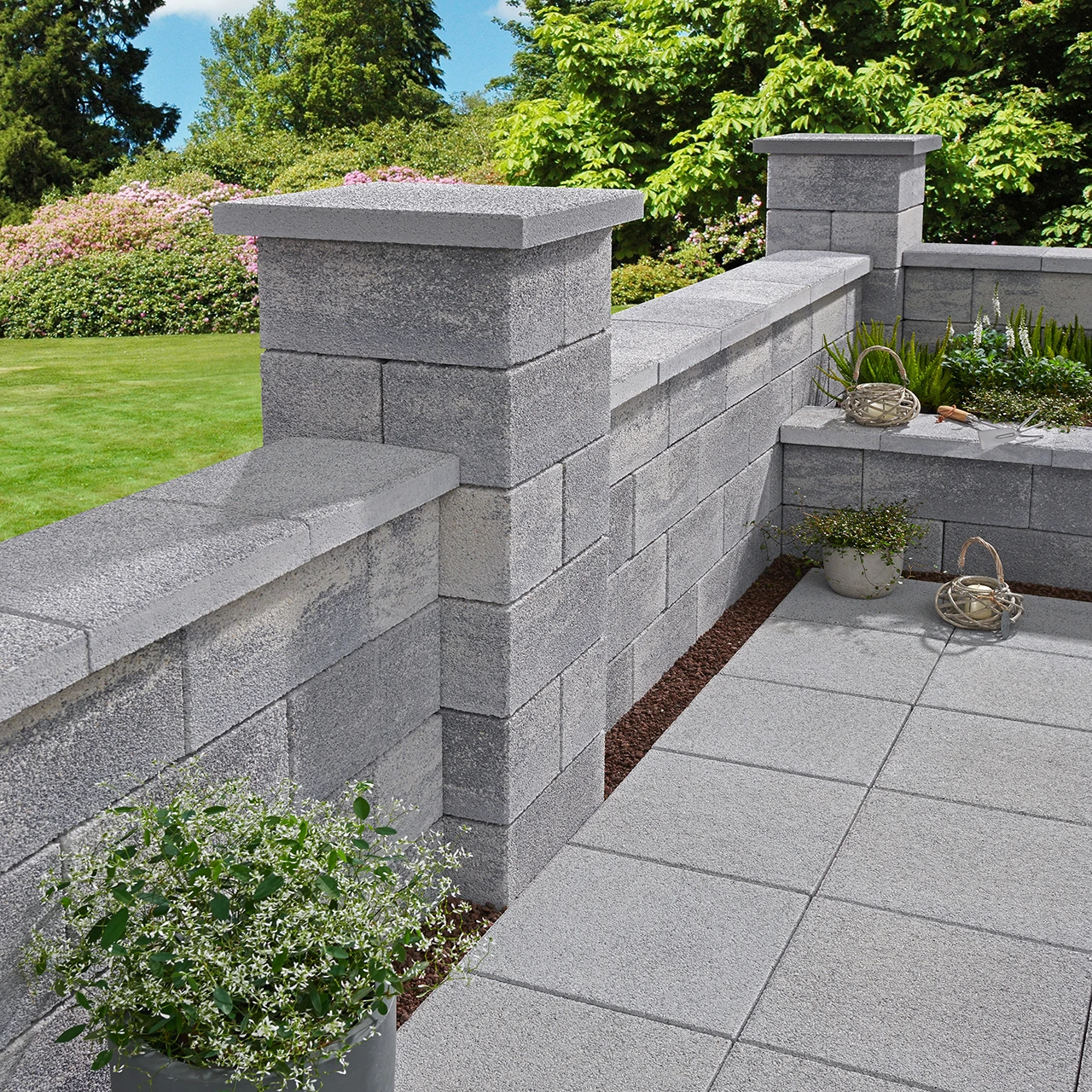Mit der hochwertigen und wassergestrahlten Oberfläche aus Natursteinkörnung ist das Gomera-Mauersystem ein echter Blickfang. Zusammen mit der hellen Farbgebung lassen sich elegante und moderne Grundstücksmauern oder auch Rand- bzw. Beeteinfassungen im Garten gestalten. Den passenden Pfeilerabschluß bildet die flache, umlaufend gefaste Pfeilerabdeckplatte. Format: 48/48/4,5 / Farbe: grau-alpin / Oberfläche: wassergestrahlt