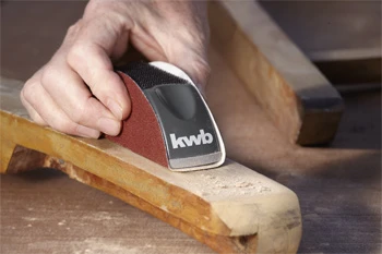 Mit dem kwb Handschleifer können nahezu alle Profile im Heimwerkerbereich und Möbelrestauration geschliffen werden. Denn der kwb Handschleifer ist mit vier unterschiedlichen, steckbaren Profilen ausgestattet. Dabei liegt der Handschleifer dank seiner beiden ergonomisch angepassten Fingermulden immer gut in der Hand und ist vor Verrutschen während der Arbeit sicher. Besonders einfach ist die Befestigung der 125 mm Schleifscheiben mittels Klettfunktion. Der kwb Handschleifer wird mittig über der Schleifscheibe positioniert, deren überstehende Seiten hochgeklappt und mittels Klettverschlusses am Handschleifer befestigt. Zusätzlich werden vier Edelkorund-Schleifscheiben mit einer Körnung von 120 im standardisierten Durchmesser von 125 mm mitgeliefert.Selbstverständlich können mit dem Handschleifer Schleifblätter mit anderen Körnungen im Durchmesser 125 mm und mit Klettverschluss verwendet werden.