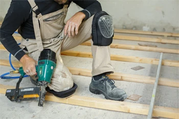 Wasserabweisende Außenschale und Gel-Schaumstoffeinlage, super leicht, ideal zum Fliesenlegen, Arbeiten im Garten und anderen Arbeiten in kniender Haltung, mit breitem Streckband und Klettverschluss für guten Sitz am Knie, dadurch bessere Blutzirkulation in der knienden Haltung, nach DIN EN 14404, bietet beim Knien auf den Untergründen Schutz gegen Schnitte und Stiche, Leistungsstufe 1.