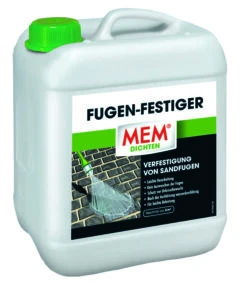 MEM Fugen-Festiger verfestigt Sandfugen in Natursteinpflaster, Betonsteinpflaster, Platten- und Klinkerbelägen. MEM Fugen-Festiger ist geeignet für Flächen mit reiner Fußgängerbelastung sowie zur Sanierung von Fugenrissen.