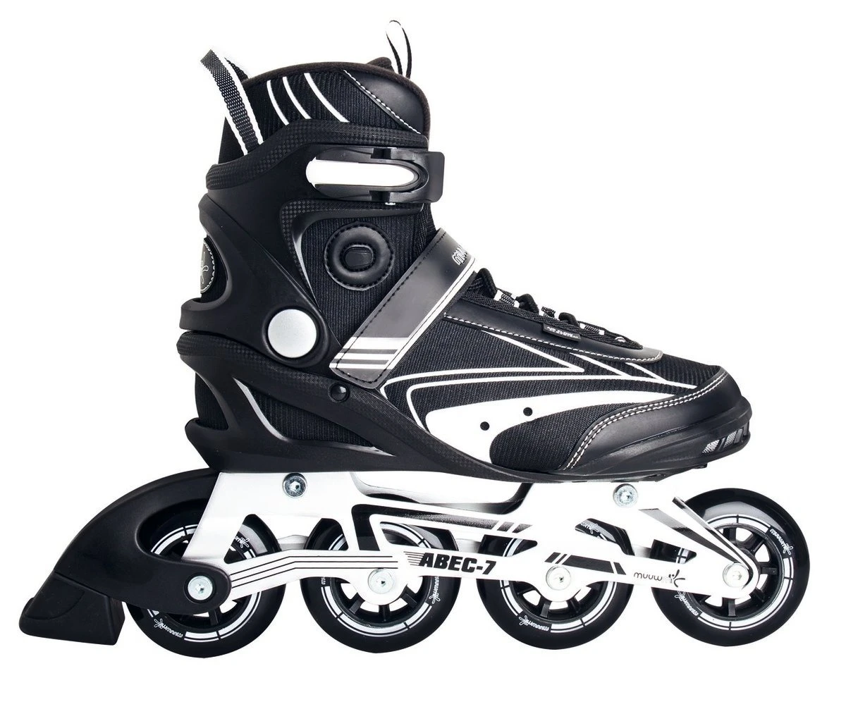 muuwmi Erwachsenen-Inliner, Gr. 39, ABEC 7, Rollengröße 80 x 22 mm, High Rebound 82 A, GS-geprüft, schwarz