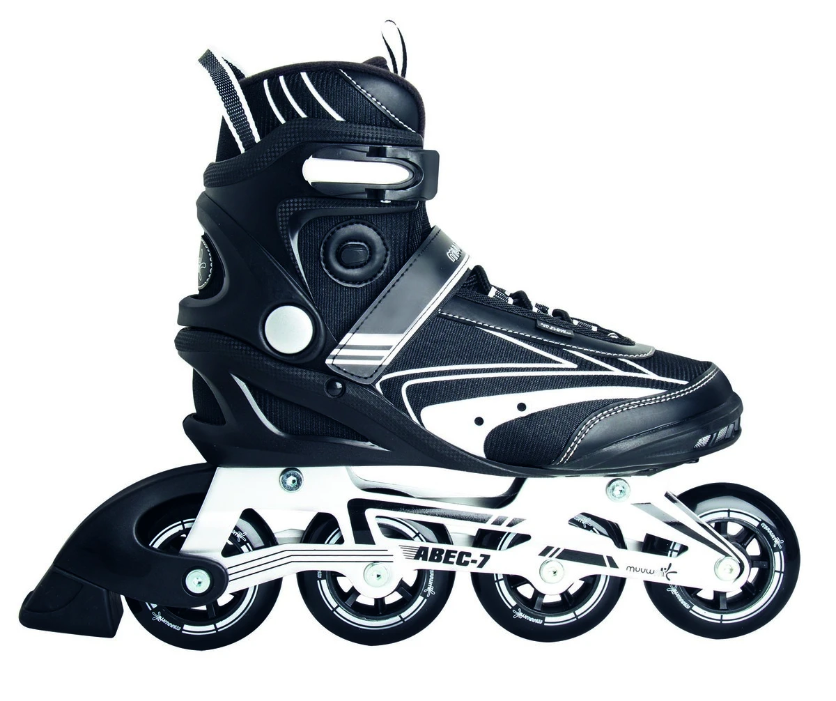muuwmi Erwachsenen-Inliner, Gr. 46, ABEC 7, Rollengröße 80 x 22 mm, High Rebound 82 A, GS-geprüft, schwarz