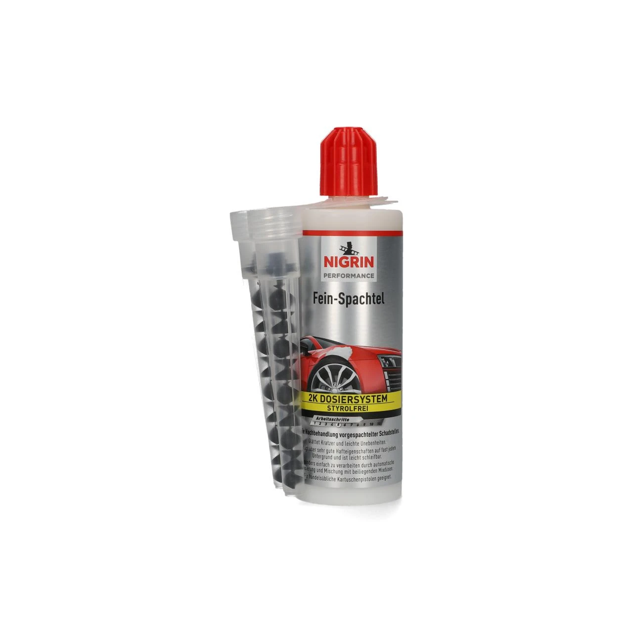 NIGRIN Performance Fein-Spachtel ist ein ein elastischer, schnellhärtender zweikomponentiger Polyester-Spachtel ohne Styrol für glatte, porenfreie Oberflächen. Durch die hervorragenden Hafteigenschaften kann er auch auf schwierigen Untergründen eingesetzt werden, z. B. Metall, Stahl, Alu, Zink, Beton, Glas, Holz, Porzellan, Kunststoffe und Styropor. NIGRIN Performance Fein-Spachtel ist verträglich mit allen konventionellen Lacksystemen und beständig gegen Säuren, Laugen, Lösemittel, Wasser u. Tausalze.