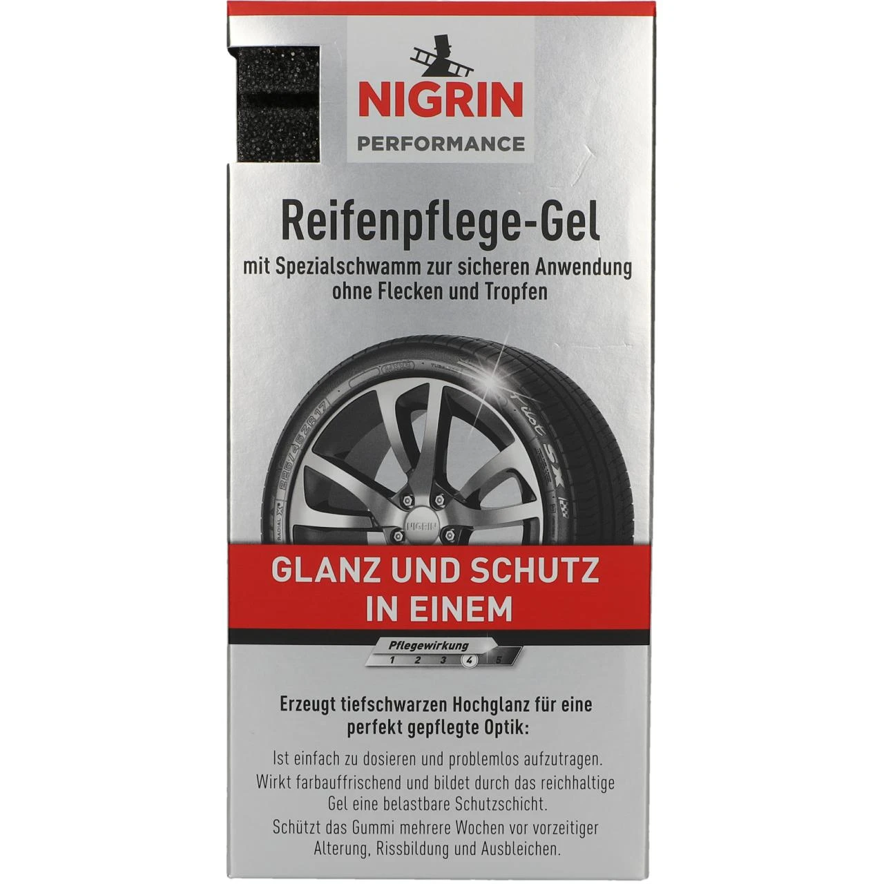 NIGRIN Performance Reifenpflege-Gel sorgt nachhaltig für den Werterhalt und eine neuwertige Optik Ihres Fahrzeugs. Es erzeugt tiefschwarzen Hochglanz und schützt gleichzeitig die Reifen vor vorzeitiger Alterung und Versprödung. Das Reifenpflege-Gel bildet eine lang anhaltende, UV-beständige, schmutz- und wasserabweisende Versiegelung und vermindert so Ihren Pflegeaufwand.