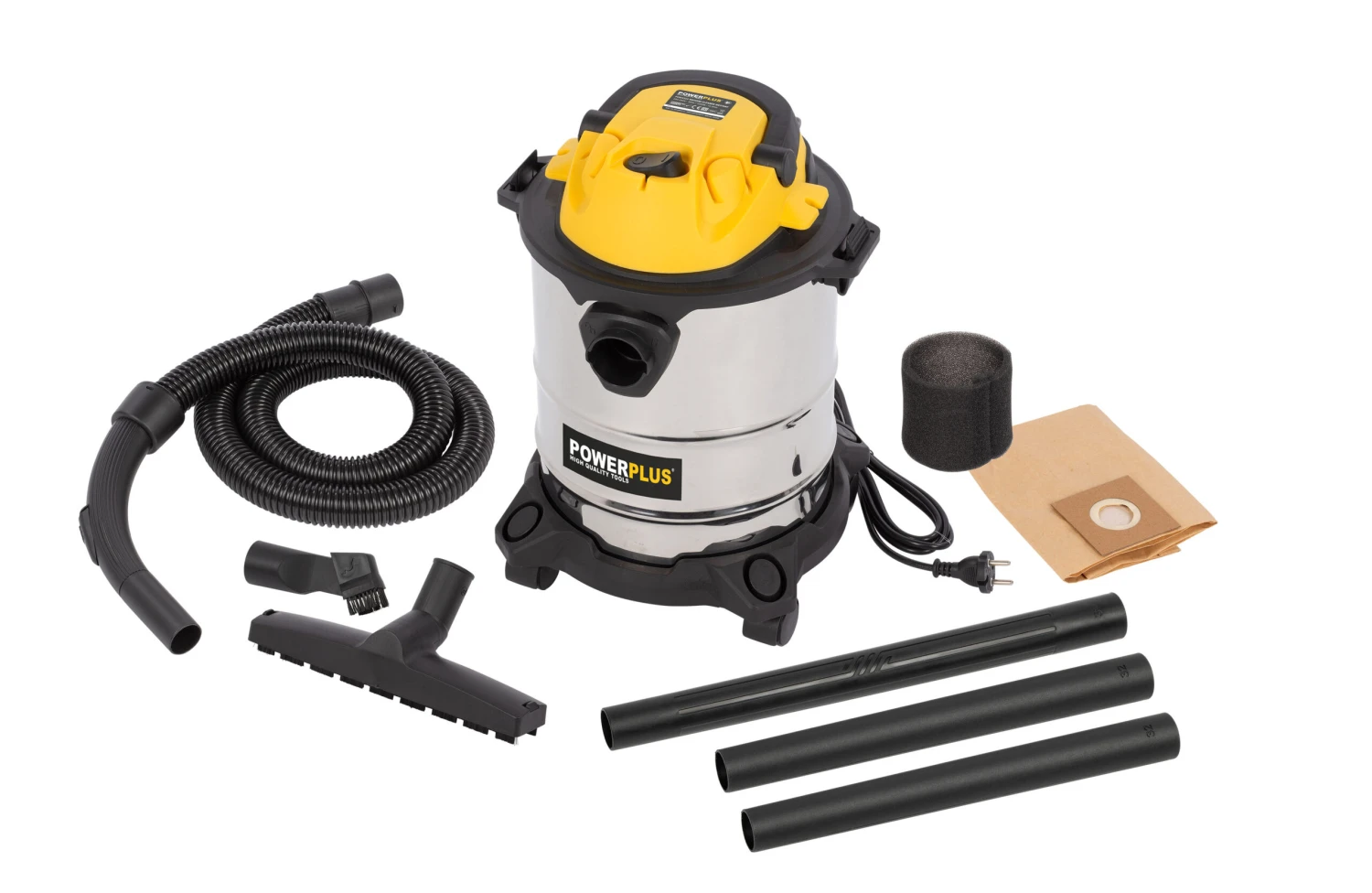 Der Nass-/Trockensauger von Powerplus entfernt schnell und effizient feinen Staub und Flüssigkeiten. Er verfügt ebenso über eine Blasfunktion, sodass Sie also auch draußen auf Ihrer Terrasse Blätter wegblasen können. Mit einem Edelstahltank und einem 1000 W starken Motor steht Ihnen ein kraftvoller Sauger zur Verfügung, der auch durchaus groben Schmutz in seinen 15-l-Tank saugen kann. Mit dem dreiteiligen Rohr können Sie schwer zu erreichende Stellen mühelos absaugen. Oder Sie entscheiden sich, die Blasfunktion einzuschalten und bereits so den Schmutz zu entfernen. Für Ihre Böden und Ihr Parkett benutzen Sie die Bodenbürste, um ohne Streifen und Kratzer zu reinigen. Sogar enge Winkel sind kein Problem, dazu tauschen Sie die Bodenbürste gegen die 2-in-1-Bürste mit Fugensaugdüse aus. Mit der Möbelbürstendüse saugen Sie den Staub kratzerfrei von Ihren Möbeln.