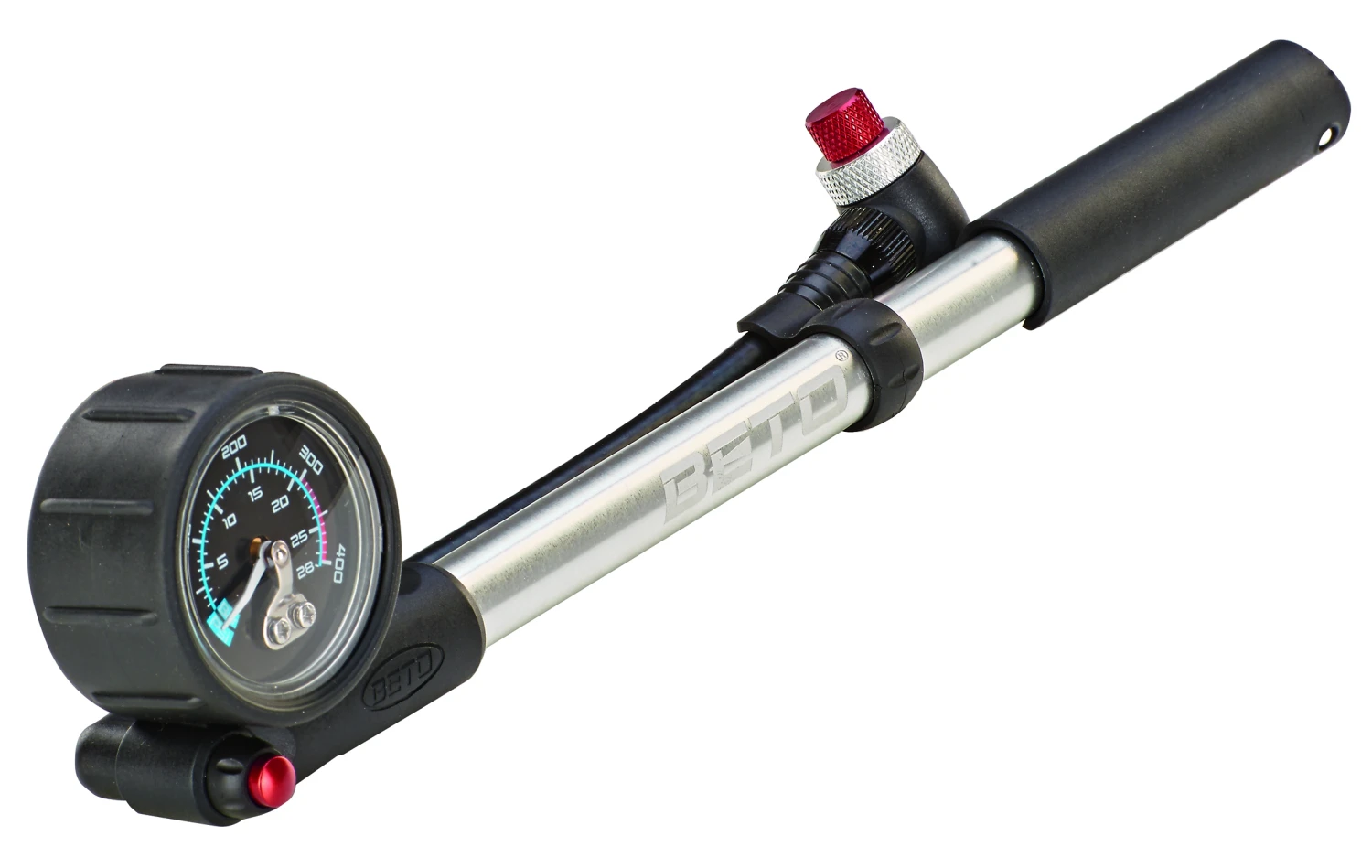 Von sportlich bis komfortabel: Mit dieser Dämpferpumpe aus hochwertigem Aluminium haben Sie die volle Kontrolle über den Luftdruck in Ihrem Dämpfer bzw. Ihrer Federgabel. Der T-Griff liegt stabil in der Hand und erlaubt einen Pumpdruck von bis zu 20 bar. Mithilfe des eingebauten Manometers lässt sich der aktuelle Druck rasch ablesen. Bei zu hohem Druck können Sie über den Entlüftungsknopf ganz einfach überschüssige Luft ablassen. Der Drehschlauch macht die Anwendung besonders flexibel.