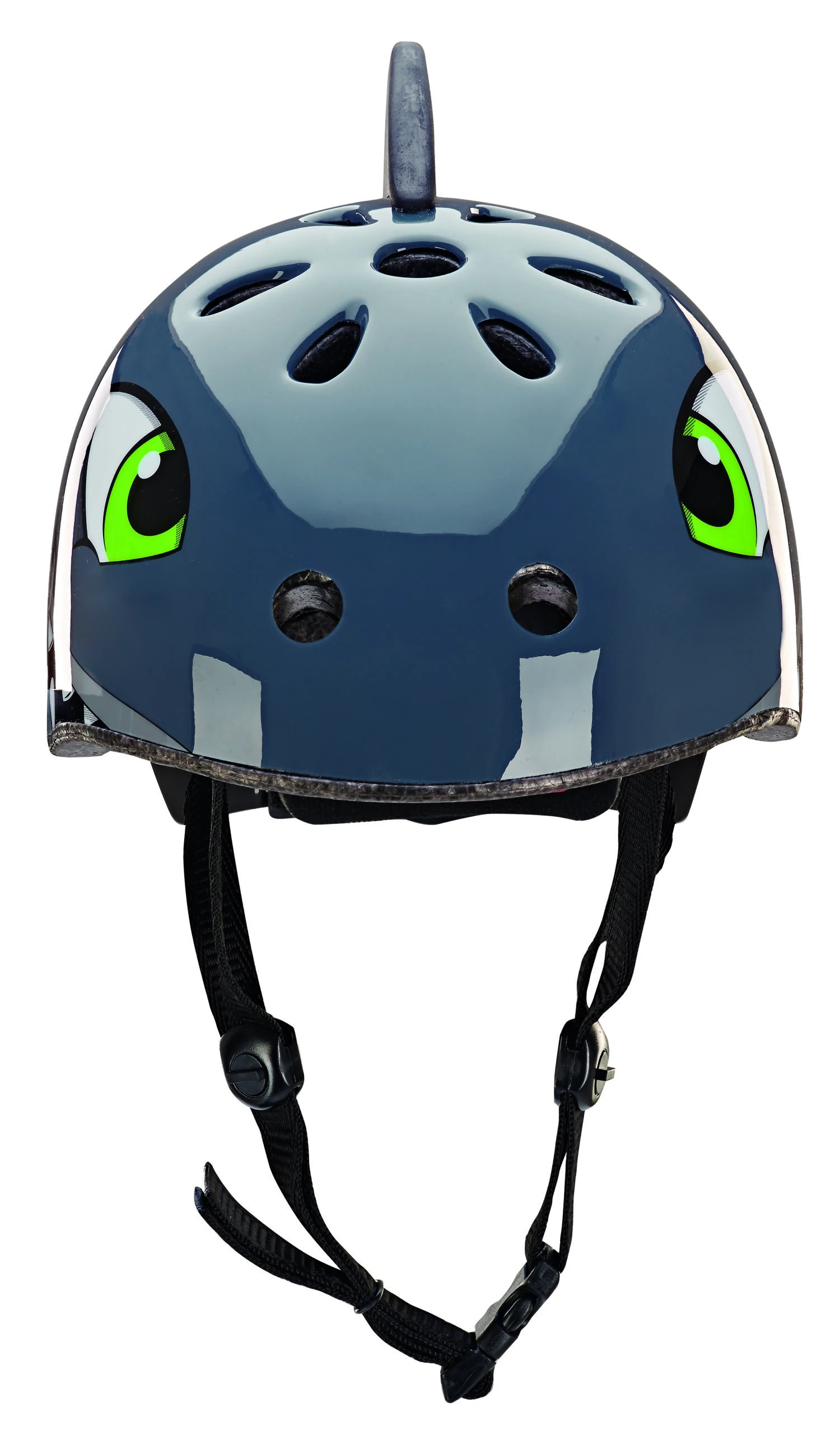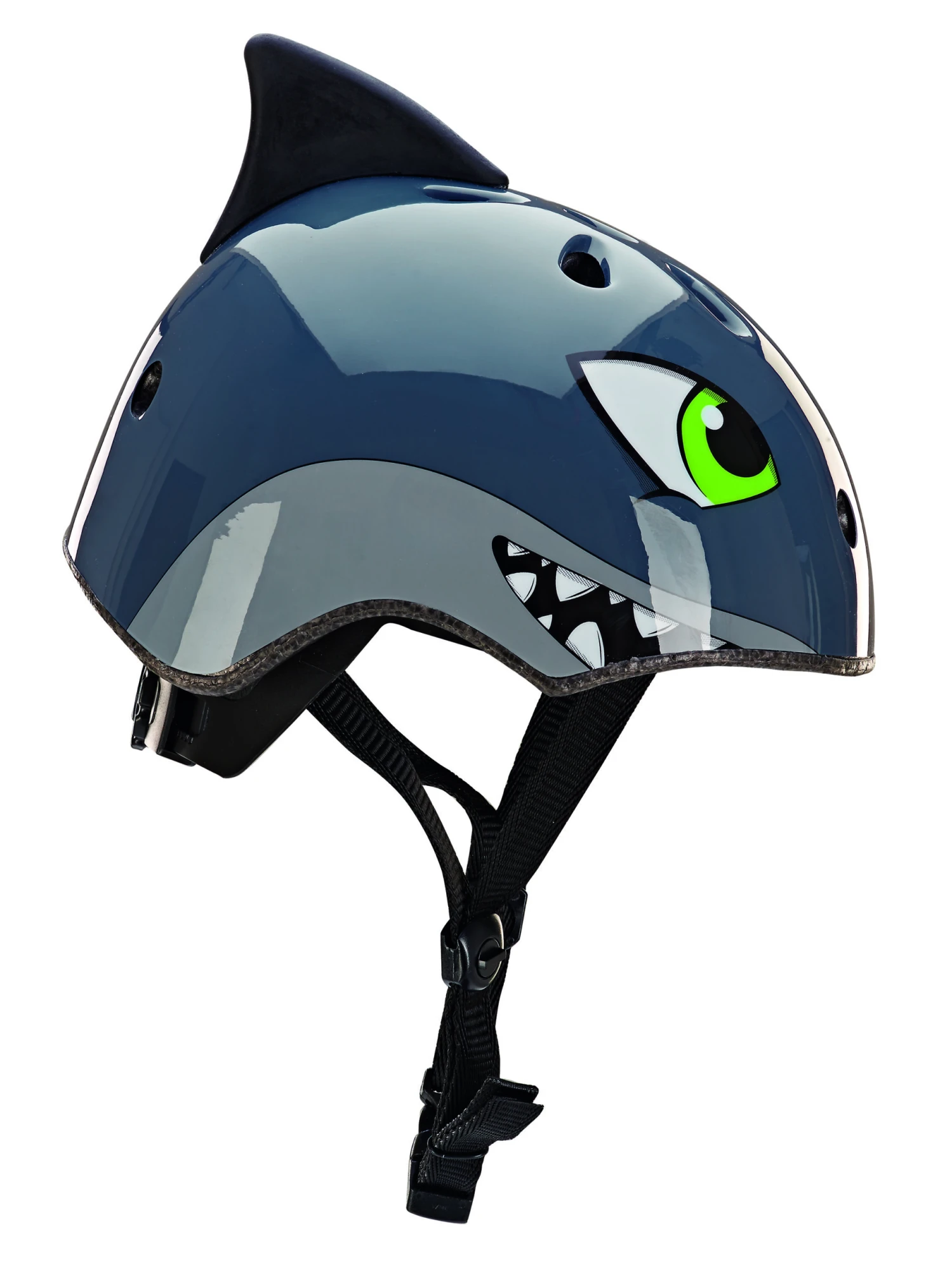 Sicher auf der Jagd: Dieser Kinder-Fahrradhelm in Größe S sieht mit seiner Hai-Optik einfach cool aus und schützt Ihre Kleinen darüber hinaus im Straßenverkehr. Die extrem stoßfeste Hartschaum-Innenschale bietet verlässlichen Schutz des Kopfes bei Unfällen. Ein Reflexionsstreifen an der Rückseite sorgt für zusätzliche Sichtbarkeit im Dunkeln. Der Umfang des Kopfbands lässt sich stufenlos zwischen 50 und 54 cm einstellen und gewährleistet so eine besonders gute Passform. Der Kinnriemen ist gepolstert und verstellbar. Die zahlreichen Belüftungsschlitze im vorderen Bereich ermöglichen eine optimale Luftzirkulation. Der Helm ist nach DIN EN 1078 zertifiziert.