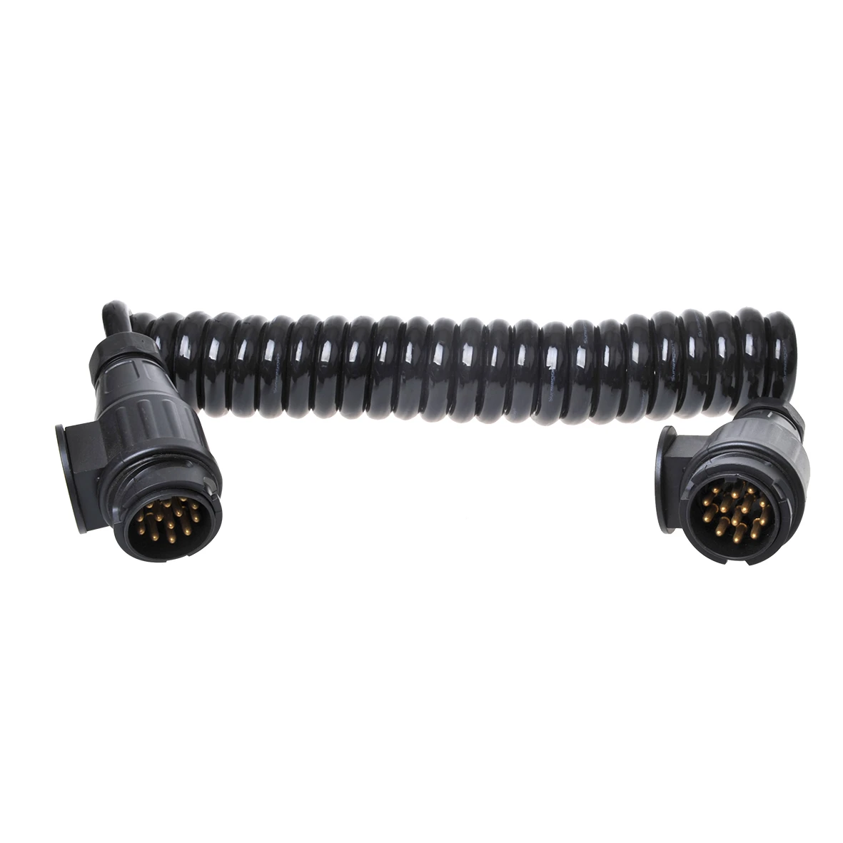 - Dieses Kabel ist ein spiralförmiges Verlängerungskabel, mit 2 männlichen / männlichen 13-poligen Anschlüssen für 12 V.