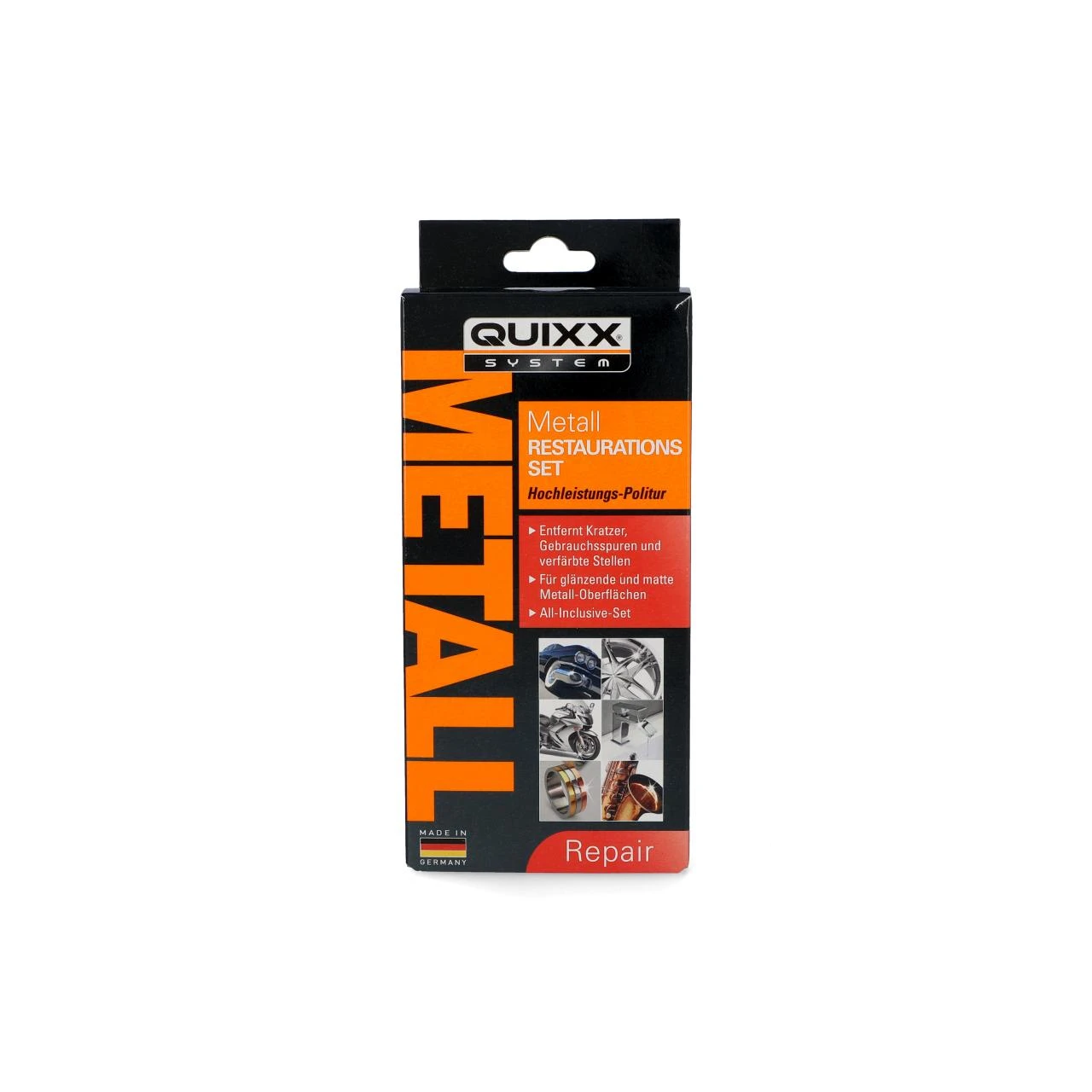 Quixx Metall Restaurations-Set ist das ultimative Restaurations-Produkt für glänzende und matte Oberflächen bei Metallen wie Gold, Silber, Platin, Chrom, Edelstahl, Aluminium, Magnesium, Messing, Kupfer, Nickel.