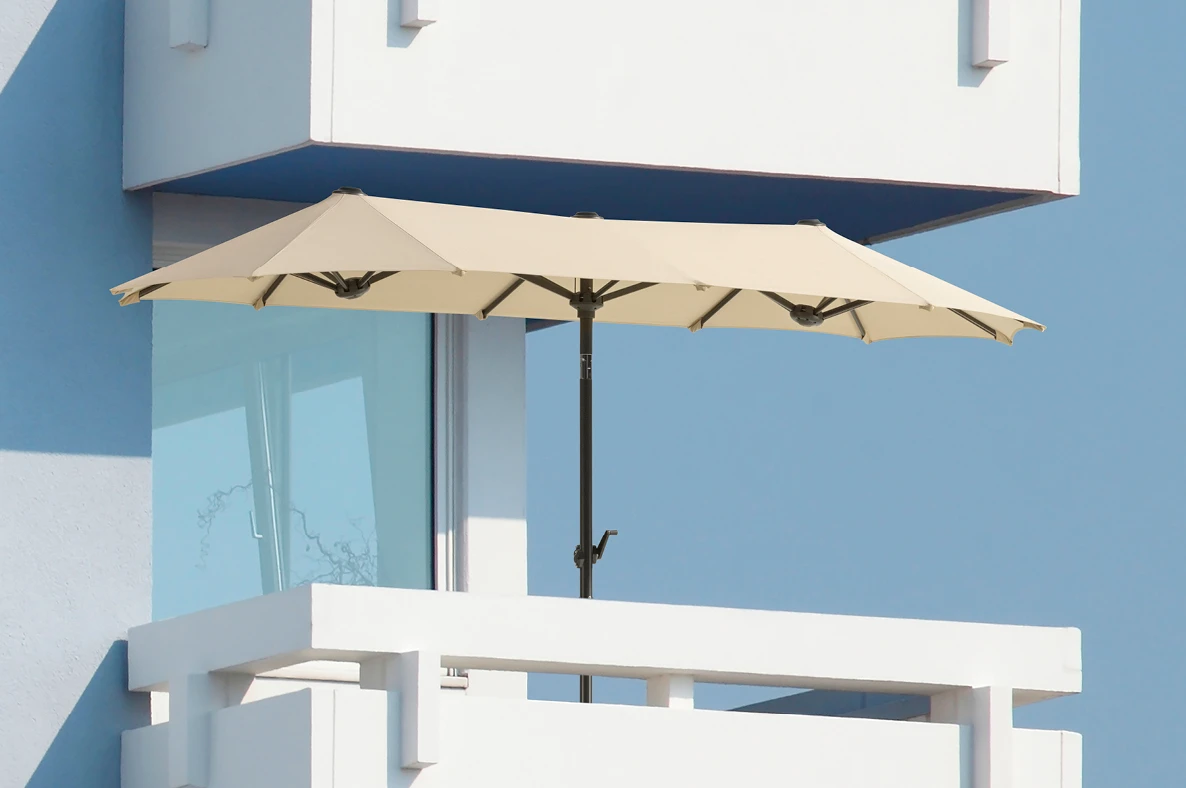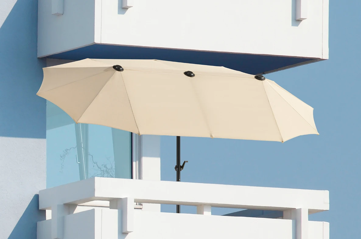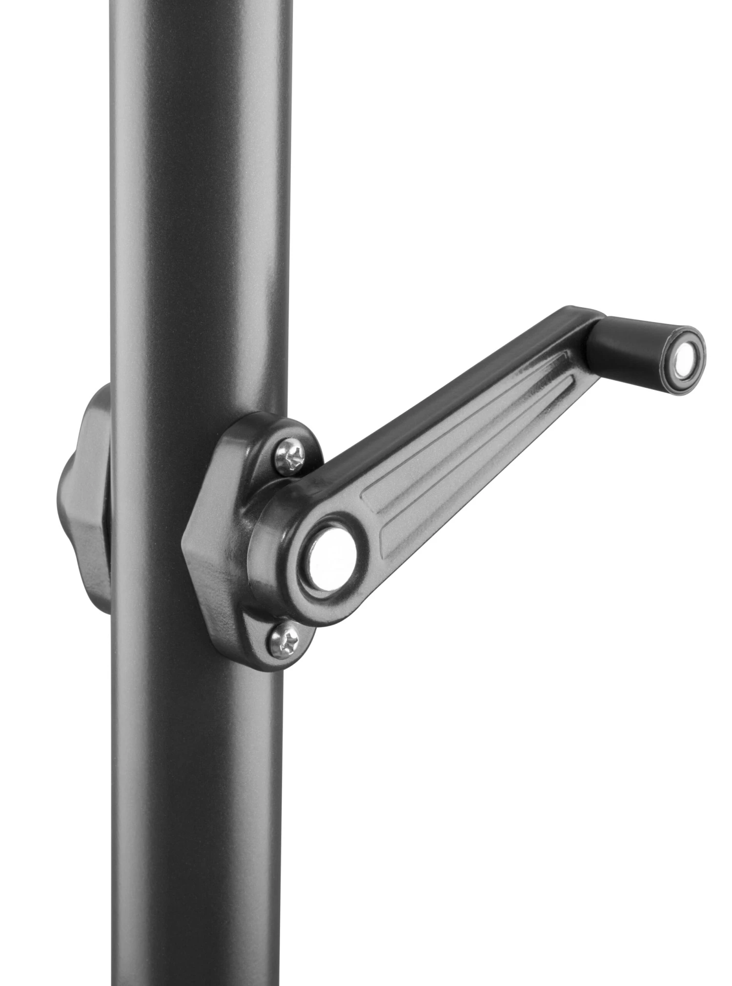 Unser Sonnenschirm Modell Salerno ist ein hochwertiger Balkonschirm mit Scherentechnik und Knicker. Öffnen, Schließen und Knicken ist auf engstem Raum möglich, das heißt zwischen Balkongeländer und darüberliegender Etage! Salerno – der ideale Balkonschirm Der Schirm Salerno ist ein Balkonschirm mit Scherentechnik mit einer Größe von ca. 300 x 150 cm. Die Bespannung besteht aus 100 % Polyester und ist verrottungsfest. Die Stoffstärke liegt bei ca. 180 g/m², was sie sehr widerstandsfähig macht. Der Bezug ist ohne Volant gefertigt, wodurch dem Schirm eine elegante Note verliehen wird. Außerdem ist die Bespannung wasserabstoßend imprägniert, wodurch Sie auch einem leichten Regenschauer standhält und im Nu wieder getrocknet ist. Mit einem UV-Schutz von 50+ wird Ihnen mit diesem Produkt ein ausgezeichneter Sonnenschutz geboten. Dieser Wert wurde nach ausführlichen Testreihen gemäß der australisch-neuseeländischen Norm festgelegt. Besondere Merkmale Das Stahlgestell hat eine anthrazitgraue Pulverbeschichtung. Der Stock hat einen Durchmesser von ca. 38 mm und ist zweiteilig, wodurch Sie den Schirm problemlos auseinanderbauen und über den Winter platzsparend einlagern können. Mithilfe der integrierten Kurbel lässt sich der Schirm ohne großen Kraftaufwand Öffnen und Schließen. Durch den Metall-Knicker kann der Schirm problemlos geknickt werden und bietet damit optimalen Schatten. Die Gesamthöhe des aufgestellten Schirmes beträgt ca. 220 cm, mit einer Durchgangshöhe von ca. 186 cm. Im geknickten Zustand beträgt die Gesamthöhe ca. 231 cm. Lieferumfang & Zubehör Im Lieferumfang enthalten ist eine lichtundurchlässiger Schutzhülle mit Reißverschluss und Stab, somit ist Ihr Schirm vor äußeren Einflüssen geschützt und Sie haben länger Freude daran. Durch den Stab ist das Überziehen der Schutzhülle sogar bei aufgestelltem Schirm ein Kinderspiel. Um einen sicheren und stabilen Stand zu gewährleisten, empfehlen wir einen Schneider Schirmständer mit einem Mindestgewicht von ca. 40 kg zu verwenden. Passende Schirmständer, die mit diesem Schirm verwendet werden können sind: PE-Ständer ca. 45 ltr. zum Befüllen mit Sand oder Wasser (Art. 856-01 weiß oder 856-15 anthrazit) und der PE-Ständer ca. 40 kg anthrazit (Art. 857-15). Alternativ können Sie auch folgende Produkte verwenden: Rasen-Vierzack (Art. 863-00), Bodenhülse (Art. 827-00), Bodendübel (Art. 888-00), Balkon-Plattenständer (Art. 864-00) oder Plattenständer für Wegeplatten in der Größe 50 x 50 cm (Art. 837-15, Lieferung erfolgt ohne Platten) oder Betonständer ca. 40 kg anthrazit (Art. 898-15).