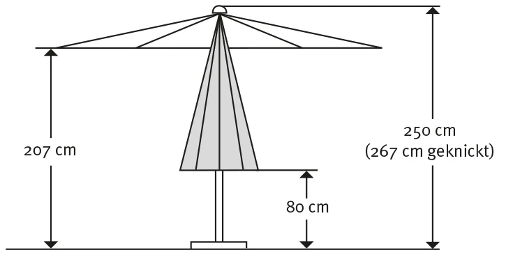 Durch die Kombination von elegantem Design mit einer klassischen Farbauswahl setzt unser Sonnenschirm Modell Venedig einen wirkungsvollen Akzent in Ihrem Garten oder auf Ihrer Terrasse. Venedig – der Filigrane Der Schirm hat eine komfortable Größe von ca. 270 cm im Durchmesser und findet somit auf fast jeder Terrasse Platz. Die Bespannung besteht aus 100 % Polyester und ist verrottungsfest. Die Stoffstärke beträgt ca. 180 g/m² und weist daher einen hohen Widerstand gegen äußere Einflüsse auf. Der Schirm ist ohne Volant gefertigt, was die elegante Note des Schirmes noch zusätzlich betont. Gemäß dem australisch/neuseeländischem Standard liegt der UV-Schutz bei 50+, was bedeutet, dass Sie mit diesem Schirm ausgezeichnet geschützt sind. Aufgrund der wasserabstoßenden Imprägnierung bleiben Sie selbst bei einem kurzen Schauer im Trockenen. Zudem ist der Schirm Venedig mit einer Kurbel ausgestattet, durch die ein Öffnen und Schließen ohne großen Kraftaufwand möglich ist. Besondere Merkmale Der Sonnenschirm Venedig hat ein Aluminium-Gestell mit einer silbergrauen Pulverbeschichtung. Dieses Gestell besteht aus filigranen runden Streben in Verbindung mit schwarzen Kunststoffteilen, was dem Schirm seine elegante Struktur verleiht. Der Stock mit 38 mm Durchmesser ist zweiteilig und lässt sich somit bei längerem Nichtgebrauch und über den Winter bequem und platzsparend einlagern. Zudem kann der Schirm mit Hilfe des Metall-Knickers abgeknickt werden und ermöglicht Ihnen dadurch einen optimalen Schutz vor der direkten Sonneneinstrahlung. Zubehör Um die Standsicherheit zu gewährleisten empfehlen wir einen Schneider Schirmständer mit mindestens 40 kg zu verwenden (im Lieferumfang nicht enthalten). Folgende Schirmständer können zusammen mit diesem Schirm verwendet werden: PE Ständer ca. 40 kg anthrazit (Art. 857-15) und PE-Ständer ca. 45 ltr. zum Befüllen mit Sand oder Wasser (Art. 856-01 weiß oder 856-15 anthrazit). Alternativ kann der Schirm auch in Verbindung mit einem Plattenständer für Wegeplatten (Art. 837-15, Lieferung erfolgt ohne Platten), einem Bodendübel (Art. 888-00), einer Bodenhülse (Art. 827-00), einem Rasen-Vierzack (Art. 863-00), einem Betonständer ca. 40 kg anthrazit (Art. 898-15) oder einem Granitständer ca. 42 kg (Art. 869-00) verwendet werden. Ebenfalls zusätzlich erhältlich ist eine lichtundurchlässige Schutzhülle (Art. 821-00), die Ihren Schirm während des Nichtgebrauchs schützt und Sie so länger Freude an dem Schirm haben werden.