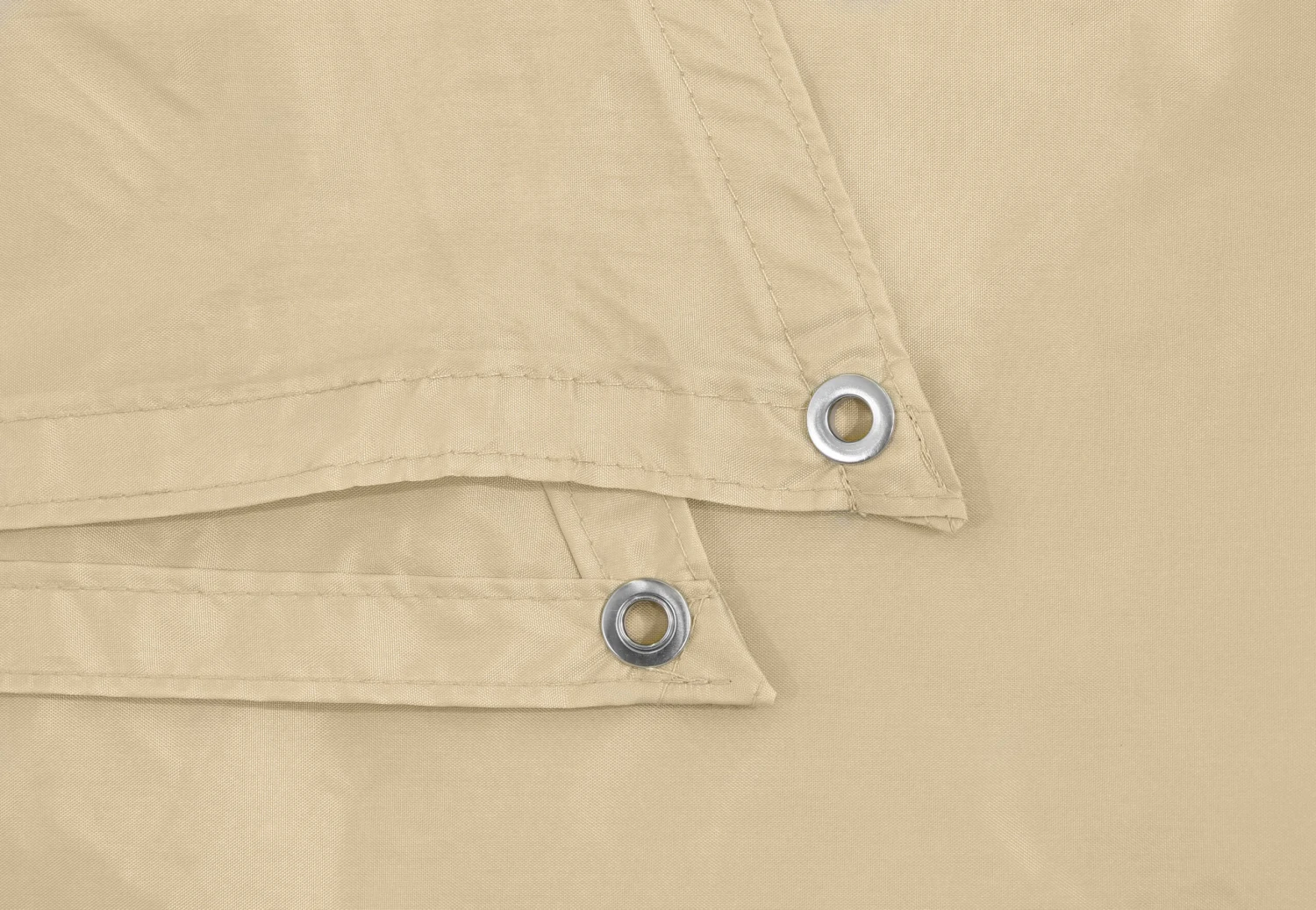 Die neuen Sonnensegel von Schneider bieten eine schöne Alternative zu einem Sonnenschirm für Ihre Terrasse oder Ihren Balkon. Mit einem Sonnensegel holen Sie sich einen cleveren Schattenspender, der sich flexibel an fast jedem Ort anbringen und nach der Saison platzsparend einlagern lässt. Besondere Merkmale Das dreieckige Sonnensegel hat ein Maß von ca. 400 x 400 x 300 cm und ist damit ideal um eine große Sitzecke zu beschatten. Gleichzeitig wird Ihnen ein UV-Schutz von ca. 50 % geboten. Das Sonnensegel besteht aus 100 % Polyester und ist verrottungsfest, sowie wasserabstoßend imprägniert. Der Randsaum ist doppelt vernäht und damit besonders stabil. Lieferumfang Das Sonnensegel wird montagefertig mit 3 Ringösen aus Edelstahl, 3 Gummispannern mit Karabinerhaken, sowie einem Befestigungsseil mit 10 m geliefert. Alternativ können Sie auch andere Befestigungsmöglichkeiten erwerben: D-Schäkel (Art. 250-20), Halte-Öse (Art. 250-30), Ösen-Schraube (Art. 250-40), Karabinerhaken (Art. 250-50) und Spann-Anker (Art. 250-10) zum Abspannen. Damit Sie möglichst lange Freude an Ihrem Sonnensegel haben, empfehlen wir das Sonnensegel bei heftigem Wind, Gewitter, Sturm und Unwetter abzunehmen.