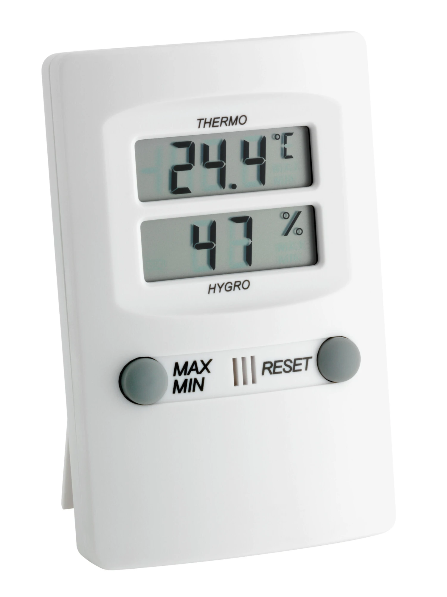 Zwei Drittel seiner Lebenszeit verbringt der Mensch mindestens in Innenräumen. Ob wir uns dort wohl und behaglich fühlen, hängt in hohem Maße von der Qualität der Raumluft ab. Zu feuchte Räume begünstigen die Schimmelbildung, aber auch eine zu trockene Luft schadet der Gesundheit und Haustiere, Pflanzen, Holzböden und Antikmöbel leiden mit. Dieses funktionale Thermo-Hygrometer ist ein ideales Messinstrument zur Überwachung des Raumklimas. Temperatur und Luftfeuchtigkeit können Sie einfach im Blick behalten und durch gezieltes Heizen und Lüften regulieren. Die Höchst- und Tiefstwerte werden gespeichert und auf Knopfdruck angezeigt. So schaffen Sie sich ein angenehmes und gesundes Wohnklima und sparen sogar Heizkosten.