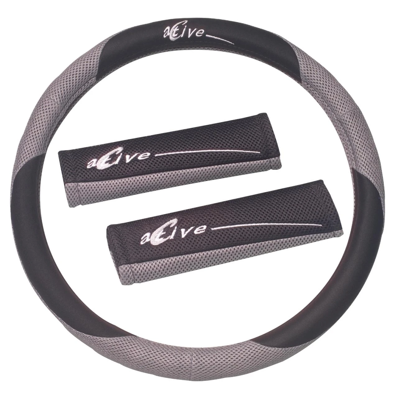 - Lenkradhülle und 2 Gurtpolster im trendstarken Mesh Design