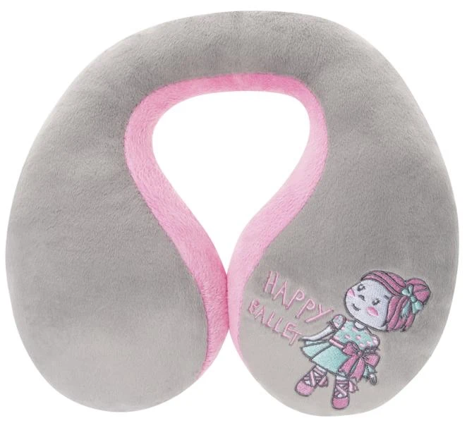 Das besonders flauschige Material der Nackenrolle lädt geradezu für ein kleines Nickerchen ein Die ergonomische Konstruktion verhindert beim Schlafen sanft das seitliche Kippen des Kopfs. Die hochwertige Ballerina Stickerei ist besonders liebevoll gearbeitet. Das Material kann man leicht abwischen und ist waschbar.